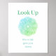 This poster has an image of a filigree circle in aqua blue and green colours over a white background. Centre text above and below the filigree reads "Look up" and "when life gets you down".