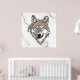 Illustration moderne de loup gris sur pierre de marbre beige avec grain gris