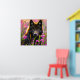 Poster Loup noir en fleurs roses