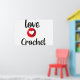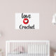 Poster Crochet blanc avec de grandes lettres noires et rouges avec un coeur. Idéal pour votre salle d'artisanat ou bureau. Idée cadeau pour un fabricant qui aime au crochet.
