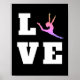 Cette affiche mignonne présente le mot LOVE en gros caractères blancs gras sur un arrière - plan noir. Le "O" est remplacé par un danseur de couleur pastel en milieu de saut