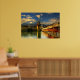 Impression de toile ou affiche d'une scène de soleil éblouissante de la belle et historique ville de Lucerne Suisse. On y voit le pont historique de la Chapelle (Kapellbrücke) et la tour du pont de la Chapelle, le majestueux mont Pilatus et la rivière Reuss. Cela aurait l'air génial sur n'importe quel mur comme une énorme impression de toile.