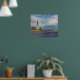 Affiche pittoresque représentant un peu du sud de la Floride, vue de l'eau. La tour est la lumière Hillsboro Inlet de 1907, située à l'embouchure de la voie navigable très fréquentée qui mène à l'intérieur des terres depuis la limite est de l'océan Atlantique, et un point de repère maritime familier à ceux qui naviguent depuis la mer.