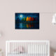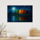 A radiant moon casts its glow over a tranquil body of water, illuminating a row of trees whose foliage transitions through a full chromatic spectrum—from verdant green to golden yellow, fiery orange, deep crimson, and violet dusk. The night sky, rich with stars and swirling clouds, envelops the scene in serenity, while the water below mirrors the vibrant gradient with gentle distortion. Lunar Spectrum invites viewers into a dreamlike moment where color, light, and reflection converge. It evokes themes of emotional transformation, seasonal passage, and the quiet magic of moonlit solitude.