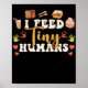 The lunch lady design. This funny rainbow design reads i feed tiny humans and is a great food service school cafeteria ladies costume gift idea. Great for everyone who likes eating apples or nice dishes at lunch in a cateria at high school or elementary school.