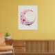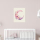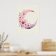 Poster avec une belle illustration représentant une lune rose et violette molle. De jolis fleurs sauvages roses et jaunes ornent ce corps céleste.