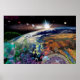 Du microcosme au macrocosme, des atomes aux astronautes, cette affiche artistique célèbre l'univers à de multiples échelles et dimensions.