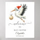 Une mignonne cigogne illustre la grossesse en disant qu'un bébé est en route. Le design comprend une cigogne dessinée à la main avec chapeau de Père Noël et une boule de Noël. Entièrement personnalisable avec les détails de votre événement, il est idéal pour une célébration de saison charmante, en ajoutant une touche douce et élégante pour accueillir votre bébé.