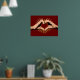 Des mains se forment en forme de coeur avec des rayons dorés de lumière venant de derrière, avec quelques objets sur un arrière - plan rouge foncé. Ce joli design fait un grand cadeau pour une petite amie le jour de la Saint-Valentin ou à tout moment de l'année. Montrez à quelqu'un de spécial combien vous les aimez en utilisant vos parties du corps pour montrer un signe universel d'affection. Tous les Designs Copyright © www.CuteComfy.