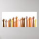 Illustration d'un groupe de mains diverses de différentes cultures et nationalités élevées dans l'air. Conception conceptuelle montrant les gens se rassemblant et se donnant mutuellement aide et soutien. Image disponible sur divers cadeaux et produits.