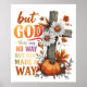 Design paisible et coloré avec une belle scène automne/automne avec une croix en bois, des fleurs citrouilles et automnales. Le texte inspirant et coloré dit : "Mais Dieu. Il n'y avait aucun moyen, mais Dieu a fait un chemin". Ce design est disponible sur une grande variété de produits.