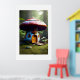 L'image représente une scène fantaisiste d'un champignon transformé en maison. Le casquette de champignons est grand et rouge avec des taches blanches, ressemblant à l'emblématique champignon agarique de la mouche. Il sert de toit pour la maison, avec ses branchies visibles d'en-dessous. La tige du champignon a des fenêtres et une porte, indiquant qu'elle est creusée pour l'espace de vie. La porte est ouverte, laissant apparaître une lumière chaude à l'intérieur, suggérant l'occupation ou l'accueil. Il y a deux fenêtres en forme d'arcs avec des cadres bleus et des rideaux jaunes dessinés sur les côtés sur la tige du champignon. La maison est située dans ce qui semble être un cadre forestier enchanteur avec une lumière douce du soleil filtrant à travers la brume ou le brouillard dans l'arrière - plan, créant une atmosphère éthérée. La végétation environnante comprend du sol recouvert de mousse et de petits plantes à la base du champignon. Cette image est intéressante parce qu'elle prend un élément de la nature—un champignon—et l'anthropomorphise dans une habitation d'imaginaire qui pourrait être directement sortie d'un conte de fées ou d'un livre de contes. Il joue sur des thèmes de magie et d'imaginaire, évoquant la curiosité de qui pourrait y vivre et le genre d'histoire que ce cadre pourrait raconter.