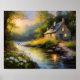 Maison en pierre sur la rivière 1 Cette peinture paisible d'une maison en pierre nichée dans les bois le long d'une rivière qui coule en douceur reflète la tranquillité et le charme de la nature. Avec des textures riches, des tons terreux et des reflets d'eau sereins, il apporte une ambiance cosy et rustique à tout espace. Parfait pour les décors cabines, les amoureux de la nature ou toute personne attirée par les paysages boisés idylliques.