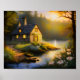 Maison en pierre sur la rivière 4 Cette peinture paisible d'une maison en pierre nichée dans les bois le long d'une rivière qui coule en douceur reflète la tranquillité et le charme de la nature. Avec des textures riches, des tons terreux et des reflets d'eau sereins, il apporte une ambiance cosy et rustique à tout espace. Parfait pour la décoration cabine, les amoureux de la nature ou toute personne attirée par les paysages boisés idylliques.stic