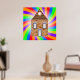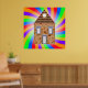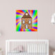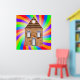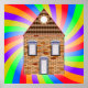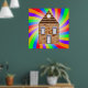 Une maison en briques entourée de couleurs arc-en-ciel très colorées. Ce design semble vraiment efficace sur ces Poster