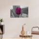 La tulipe violette se distingue des arrière - plans noirs et blancs.
