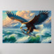 Poster Majestic Eagle Swooping Down to Catch Fish 20x16