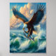 Poster Majestic Eagle Swooping Down to Catch Fish 5"x7"