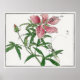 Une pièce frappante de l'art japonais vintage avec une fleur de Mallow marécageuse rouge et un Mantis de prière, peinte par Morimoto Toko. Il est tiré d'une publication de 1910 intitulée 'Churui Gafu', ou 'Un bel album d'insectes japonais'. Cette oeuvre d'art à haute résolution remasterisée convient également aux grandes tailles d'impression.