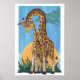 Maman girafe et bébé, une œuvre d'art pour enfants créée par Imagine That ! Design sur des produits électroniques, des accessoires et des cadeaux, est une scène fantaisiste représentant une girafe et son bébé debout contre un soleil couchant et un ciel bleu texturé, blottis l'un contre l'autre, le cou de la mère courbé de manière à ce qu'elle et son bébé puissent se toucher les joues dans une pose affectueuse. Les amoureux des girafes de tous âges adoreront recevoir cette peinture de famille de girafes en cadeau.