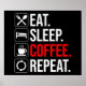 Poster Manger. Dormir. Café. Recommencer