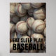 Poster Mangez le sommeil Jouer noir et blanc Baseball Mot