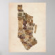 Une carte texte typographique de la zone de Manhattan à New York. La carte est faite à partir des noms des quartiers et quartiers de Manhattan, New York, dans les tons marron sur un arrière - plan vintage