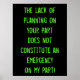 Le manque de planification de votre part ne constitue pas et l'urgence de ma part!