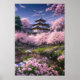 Poster Mansion japonaise embrassée par Sakura Blossoms