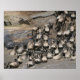Les gnous traversent la rivière Mara lors de leur migration annuelle du Kenya vers la Tanzanie. Poster entièrement personnalisable disponible dans une gamme de tailles et de types de papier. Les espèces sauvages sont célèbres pour leur migration annuelle sur de longues distances, apparemment programmée pour coïncider avec le motif annuel des précipitations et de la croissance de l'herbe. Le moment de leur migration à la fois en saison pluvieuse et sèche peut varier considérablement (par mois) d'une année à l'autre. À la fin de la saison des pluies (mai ou juin en Afrique de l'Est), les gnous migrent vers les zones de saison sèche en réponse à un manque d'eau de surface (potable). Lorsque la saison des pluies redémarre (des mois plus tard), les animaux reviennent rapidement à leurs plages de saison des pluies.