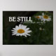 Poster avec le verset du Psaume 46 qui dit "Soyez calme et sachez que je suis Dieu" contre l'arrière - plan d'une photo de marguerites blanches aux centres jaunes dorés encourage les téléspectateurs à ralentir et à considérer le côté spirituel de leur vie.