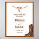Ajoutez une touche de charme rustique et d'élégance bohème à votre mariage grâce à notre Affiche de bienvenue Mariage artisanale Boho Western. Parfait pour accueillir vos invités dans le style, ce panneau allie sans effort l'esthétique boho à l'esprit libre à l'allure robuste de la frontière occidentale.