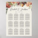 Le tableau de sièges invités mariage présente vos noms dans des lettres de script de calligraphie élégantes, avec votre date de mariage et les assignations de tables d'hôtes en dessous. Espace prévu pour 12 tables maximum. Conçu pour associer notre collection Rustic Bloom mariage et événement, avec des fleurs d'aquarelle et du feuillage dans les tons de terre d'automne muet.