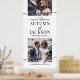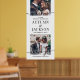 Bienvenue invités mariages à votre cérémonie ou réception avec une élégante photo personnalisée grand poster vertical. Les images et le libellé de ce modèle de signalisation téléchargeable sont simples à personnaliser (CONSEIL EN MATIÈRE DE PLACEMENT DE L'IMAGE : Une façon simple de positionner une photo exactement comment vous voulez est de la rogner avant de télécharger sur le site Zazzle.) Le design moderne minimaliste noir et blanc comprend deux images de votre choix, une calligraphie de script de style manuscrit chic, une typographie vintage élégante, et des messages personnalisables qui lisent "bienvenue à notre célébration mariage" et "merci de partager notre joie". Cette affiche imprimable est une façon élégante de partager des images fiançailles tout en ajoutant une touche personnalisée à vos décorations spéciales du jour. Félicitations à la mariée et au marié !