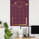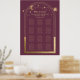 Mariage Lune Soleil Étoiles Astronomie Fleur de Prunier Or Tableau de Placement Mariage Panneau de Mariage Téléchargement Instantané Affiche Imprimable Numérique présente un cadre de soleil, lune et étoiles en or sur fond de prune. À l'intérieur du cadre se trouve le texte "Bienvenue" en élégante calligraphie dorée et vos informations de tableau de placement de réception de mariage personnalisées. Conçu pour vous par ©2022 Evco Studio www.zazzle.com/store/evcostudio