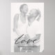 Affiche simple avec le mot "amour" en calligraphie ainsi que vos noms et date de mariage sur votre photo préférée. Un design minimaliste avec une typographie chic pour un toucher élégant, parfait pour un cadeau de mariage ou pour un jeune couple pour leur premier anniversaire.