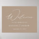 Elégant signe d'accueil de mariage avec "Welcome" dans un script de calligraphie moderne blanc avec un arrière - plan taupe (ou la couleur de votre choix). Personnalisez l'affiche du mariage en ajoutant vos noms et votre date de mariage. Le panneau d'accueil taupe mariage est conçu pour coordonner avec notre collection de mariage Modern Elegance et est disponible en d'autres couleurs.