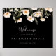 Cette affiche d'accueil classique en mariage noir, fleur sauvage, est parfaite pour un mariage rustique. Le design présente gracieusement et élégante aquarelle à la main des fleurs sauvages blush, rose, multicolore soigneusement arrangés en bouquets attrayants. Faites de cette affiche votre propre en ajoutant le nom de la mariée et du marié, ainsi que la date du mariage.