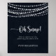 Ce panneau de mariage oh snap rustique à cordes est parfait pour une douche simple mariage ou nuptiale. Le design présente de belles lumières à cordes peintes à la main dans un arrière - plan bleu foncé. Personnalisez le panneau avec votre hashtag mariage.