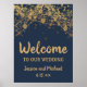 Elégant bleu marine personnalisé avec lampes à cordes d'or et mariage de livre "Bienvenue à notre mariage" signe