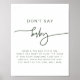 Ce panneau "Ne pas dire" comporte une police manuscrite pointue avec une combinaison de couleurs vert et blanc de la forêt. Son design simple est le signe baby shower parfait pour la maman moderne.