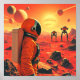 Un astronaute solitaire se dresse sur un paysage alien rocheux, contemplant une énorme structure robotique avec un dôme clair et des jambes mécaniques. De multiples planètes sont visibles dans le ciel, créant une scène frappante d'exploration spatiale.