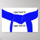 Customisez l'affiche de la ceinture bleue légère des arts martiaux Imprimez avec le nom de votre artiste martiaux, de votre équipe de gymnastique ou de votre équipe de parachutistes, de l'art martial spécifique ou du texte de votre choix. Ajoutez la date pour féliciter et commémorer le test de promotion de votre athlète. Il comprend une photographie numériquement rehaussée d'une ceinture bleue attachée dans un noeud.