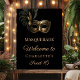 Welcome your guests in style with this glamorous black and gold masquerade welcome sign. Featuring a luxurious gold mask, this design sets the perfect tone for an elegant birthday celebration.