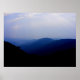 Un fantastique cliché de Blue Ridge Parkway d'un matin brumeux à travers les sommets de la montagne avec la lumière du soleil filtrant à travers les nuages tôt le matin.