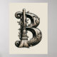 Poster Mauvaise Sorcière Balai Sorcier Lettre B Initiale