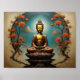 Poster Méditant Bouddha Gautama avec arbre fleuri