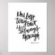 Cette citation motivationnelle et inspirante présente les paroles du poète Robert Frost, La meilleure façon de sortir est toujours par. Main écrite dans le script brush lettering pour un look personnalisé.