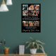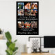 Affiche de souvenir photo personnalisée à afficher lors des funérailles ou de la veillée funèbre de quelqu'un. Cette affiche de souvenir présente un fond noir qui peut être changé en n'importe quelle couleur, 9 photos, la phrase "nous regrettons votre présence, nous chérissons votre mémoire, vous aimant toujours, ne vous oubliant jamais", leur nom et dates.