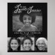 Affiche de funérailles simple en noir et blanc avec une photo en haut et trois photos en dessous que vous pouvez utiliser pour rendre hommage à votre cher disparu lors de sa cérémonie d'adieu. Personnalisez avec le nom de votre proche et ses dates de naissance et de décès. Cette bannière de cérémonie funèbre dans nos cœurs pour toujours est idéale pour quiconque est chéri et restera à jamais dans leur cœur. Typographie originale et conception graphique de cœur par Sarah Trett pour www.mylittleeden.com (Crédit photo de Guilherme Stecanella sur Unsplash, photo modèle qui est juste une image d'espace réservé à remplacer).